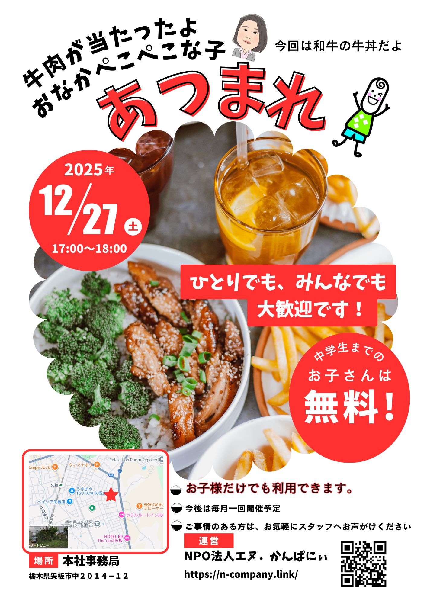 皆で食べたいなあと思ったので、今年最後の子ども食堂開催します。